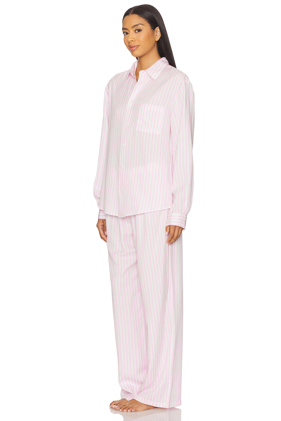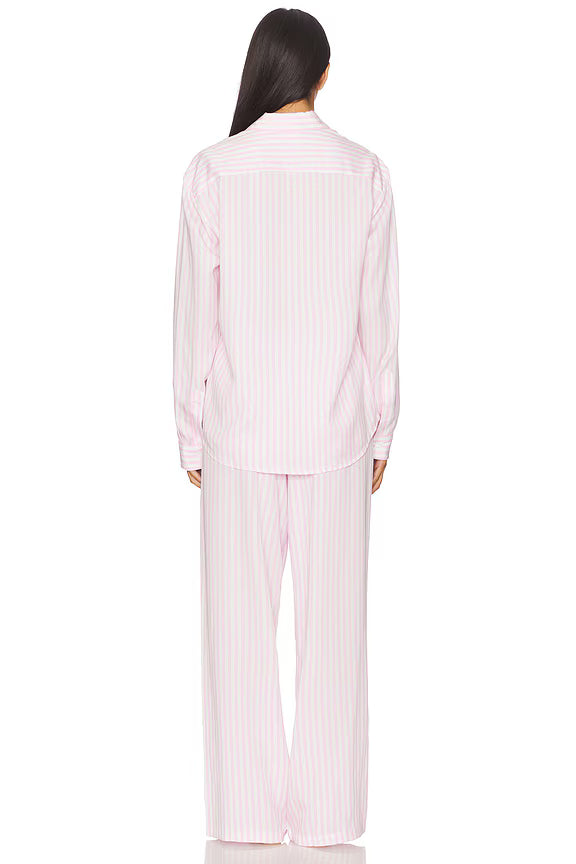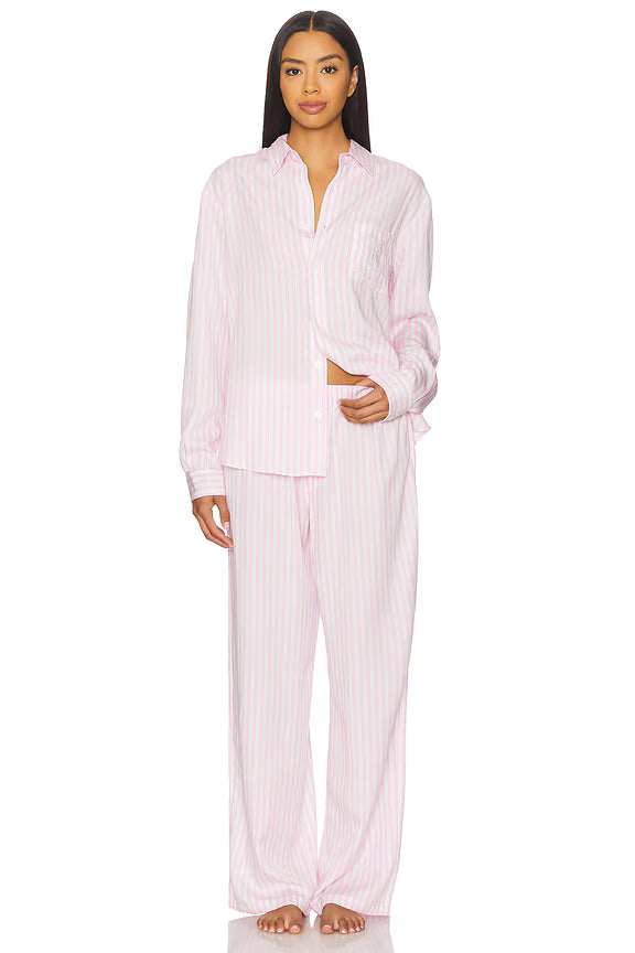 Model Harmony Butcher (@harmony.butcher) also provides major pyjama-dressing inspiration in a Homebodii linen set that would look equally stylish for brunch or lunch with friends and on vacation somewhere balmy and tropical (see the look here and shop the look here). Harmony keeps it casual and relaxed by not fastening every button and leaving the shirt out and loose.