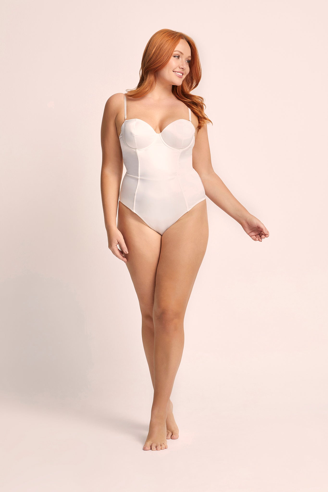 It boasts underwired molded cups, a lightly boned bodice, and an elasticated waist that work harmoniously to sculpt and enhance your natural curves. Whether you choose to wear it beneath a delicate lace robe or as an elegant addition to a simple outfit, this bodysuit is tailored to accentuate your figure with its form-fitting lightweight satin that delicately embraces your body. It's a true ode to your individual beauty.Ā