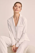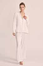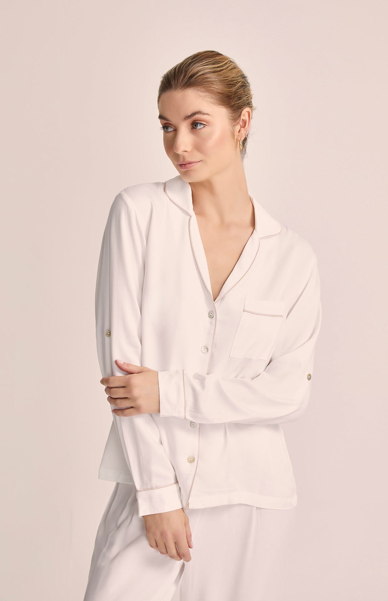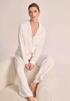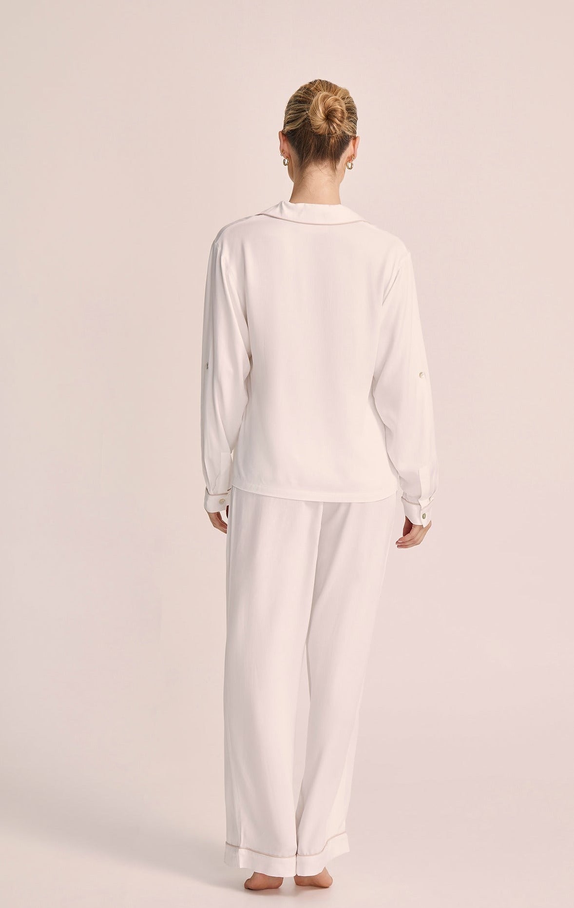 Eva Lounge Tencel™ Pyjama Set - White with Blush Piping
