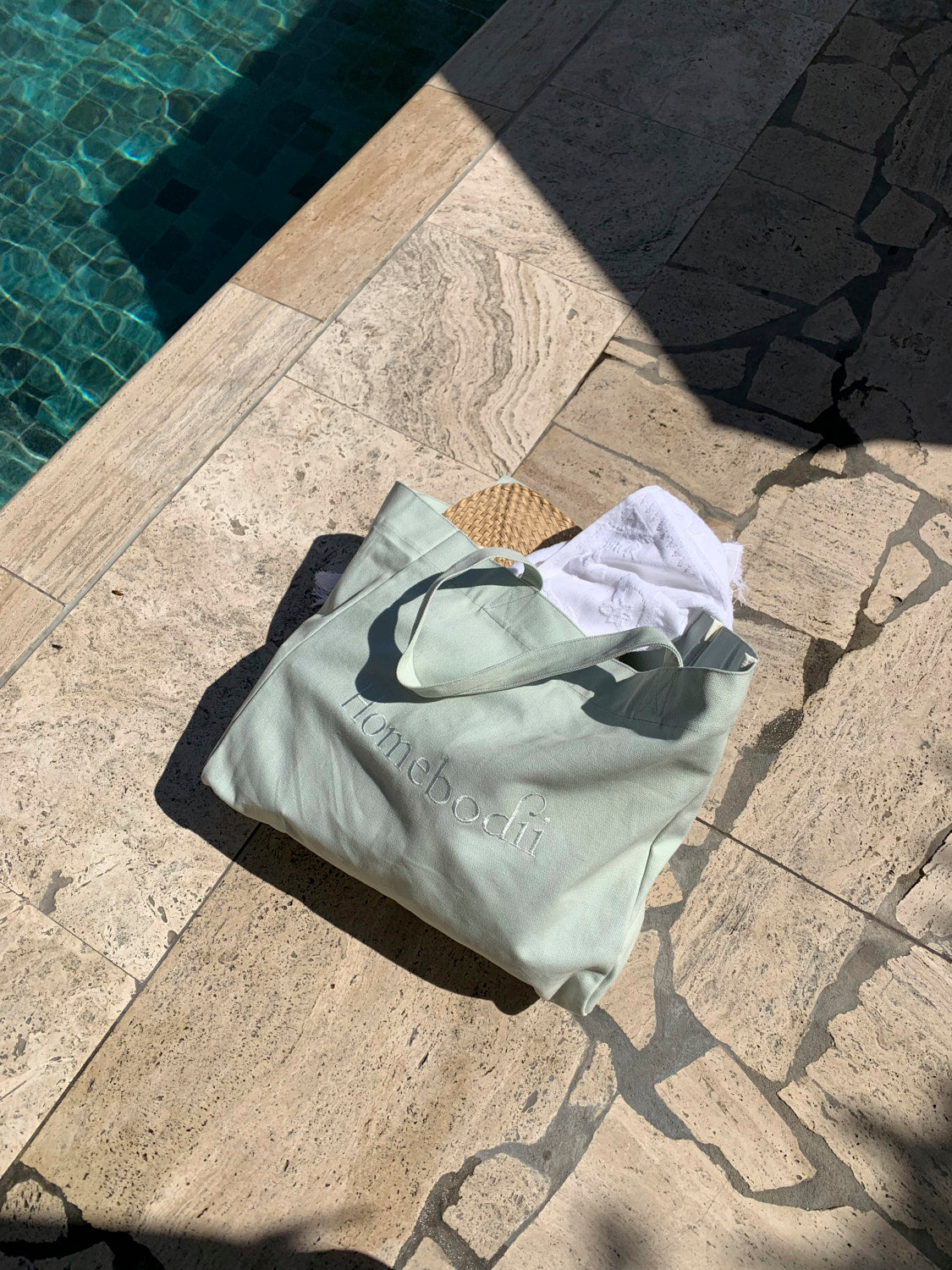 The stylish Homebodii Weekender Tote is an effortless carry-all in sage with a featured printed logo. An easy weekend bag spacious enough for all the essentials for a girls weekend away, a stylish addition to a day at the beach or out shopping