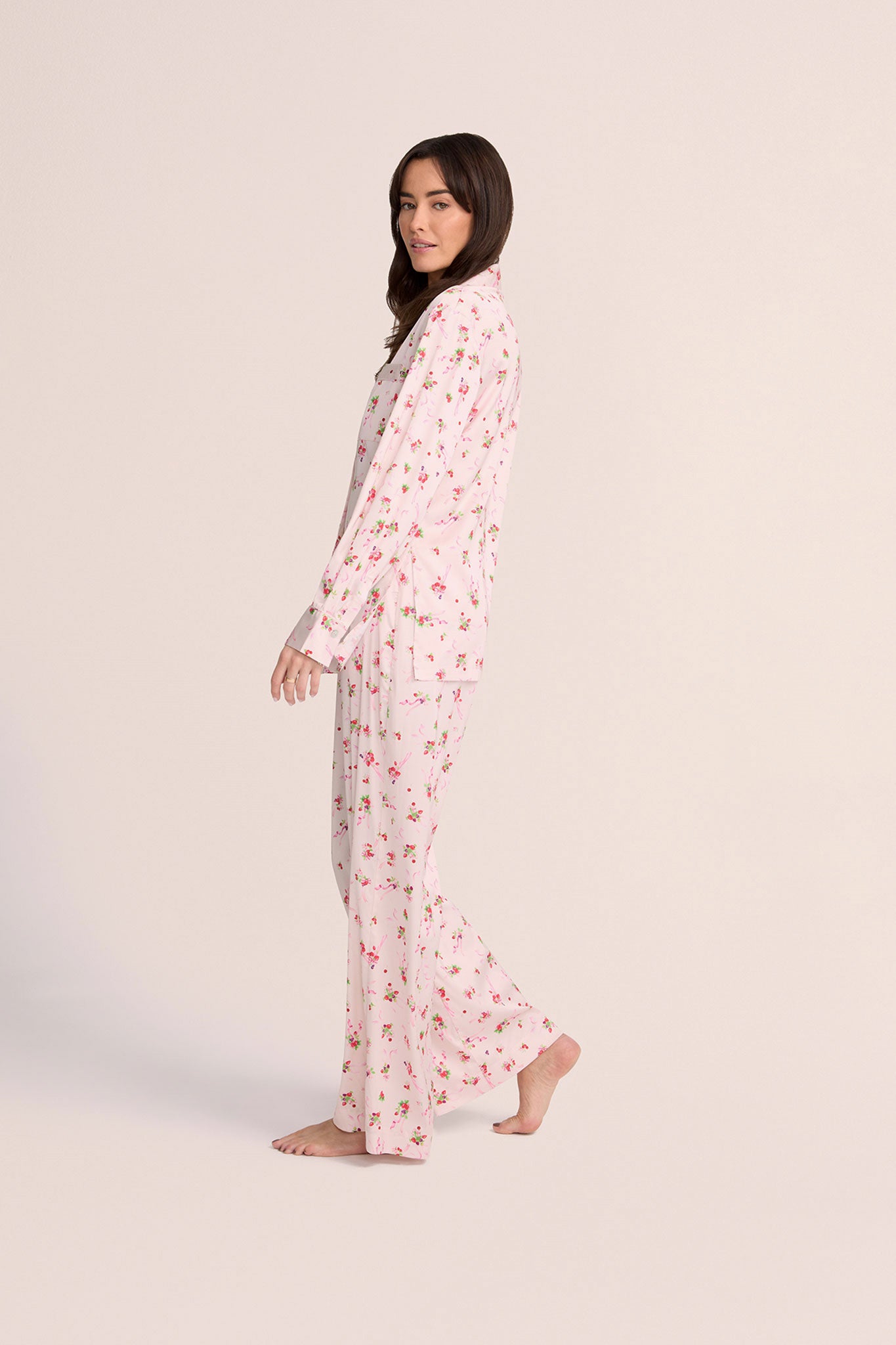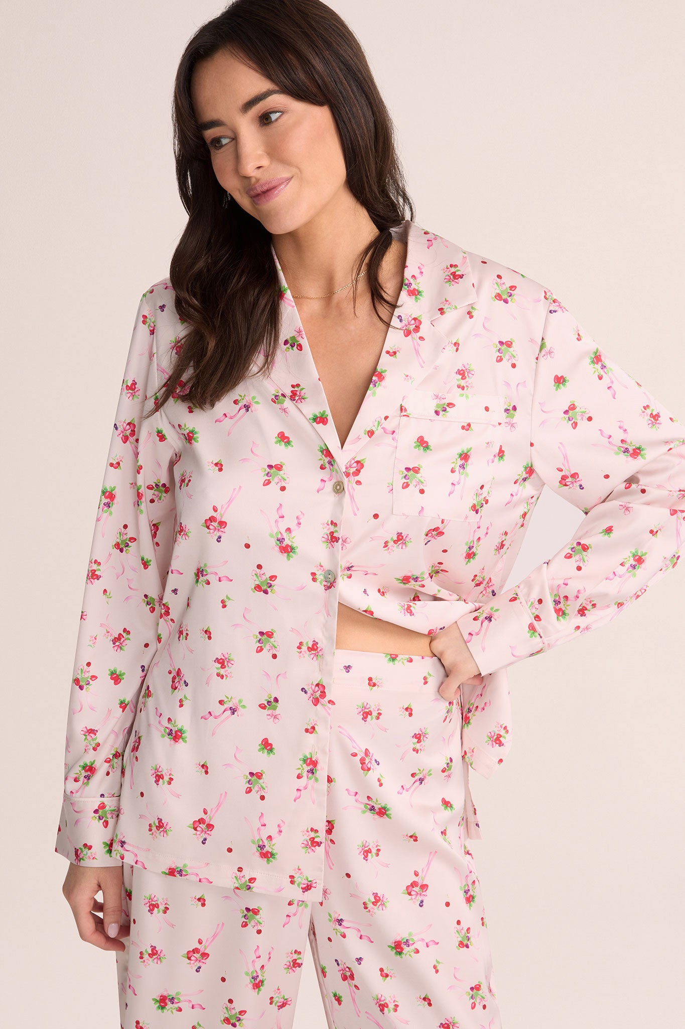 The Sweet Berry & Bows set features a playful design of delicate bows and vibrant berries, perfect for those who love a touch of femininity in their loungewear. With a relaxed fit and smooth finish, these pyjamas are as delightful to wear as they are to look at, making them an ideal choice for cosy nights in or leisurely mornings. Experience the perfect blend of style and relaxation with the Sweet Berry & Bows set, where comfort meets chic.