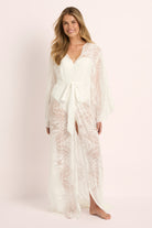 Ethereal and timeless, the Homebodii® Ophelia Lace Maxi Robe is a masterpiece of delicate craftsmanship and feminine grace. Designed in Australia, this floor-length robe is crafted from sheer ivory lace featuring exquisite paisley-inspired patterns, evoking a sense of vintage artistry and modern romance.