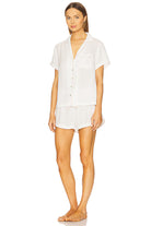 Eva Short Tencel™ Pyjama Set - White with Blush Piping