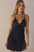 Peyton Short Lace Slip - Black