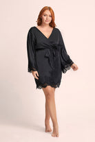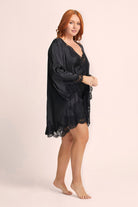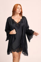 Introducing the Sian Lace Robe—a luxurious and sensual masterpiece that leaves a lasting impression. Crafted from a blend of soft satin and delicate black lace, this robe embraces comfort while accentuating your silhouette with its waist tie and figure-skimming design.