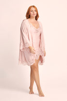 Introducing the Sian Lace Robe—an opulent and alluring piece designed to leave a lasting impression. Crafted from sumptuously soft satin and adorned with enchanting dusty rose cotton lace, this robe accentuates your curves with its waist tie and flattering silhouette.