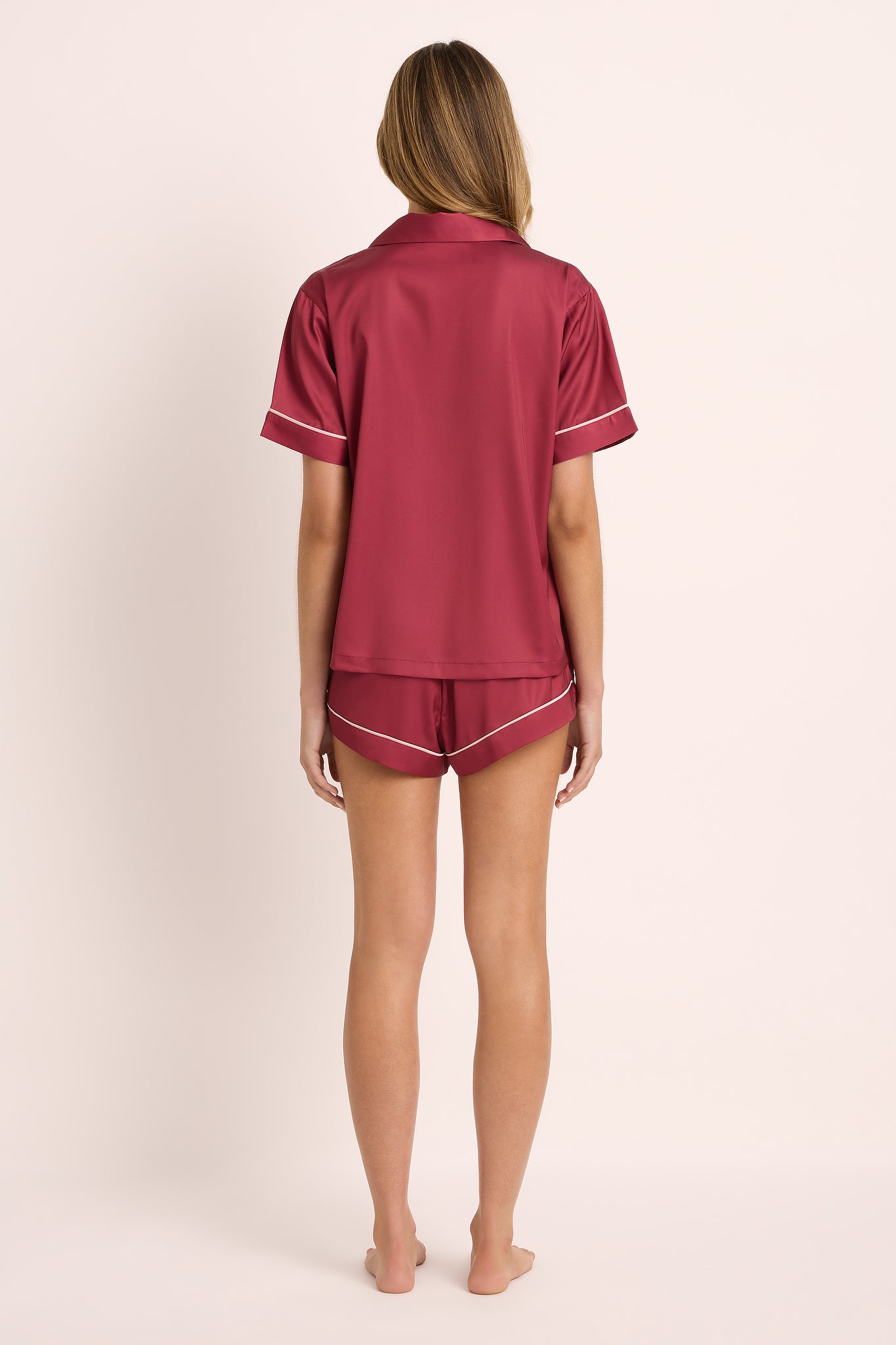 Introducing the Homebodii Grace Pyjama Set in a festive burgundy with soft rose piping—where luxury meets the magic of the holiday season. This rich, romantic colourway is perfect for Christmas celebrations, offering timeless elegance with a modern, feminine twist.