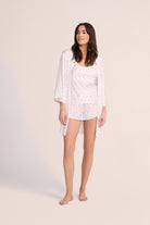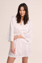 The Rosie Robe features a delicate rose print on a pristine white base, exuding timeless charm and femininity. Its lightweight and breathable design make it perfect for relaxed mornings, bridal preparations, or simply unwinding in style.