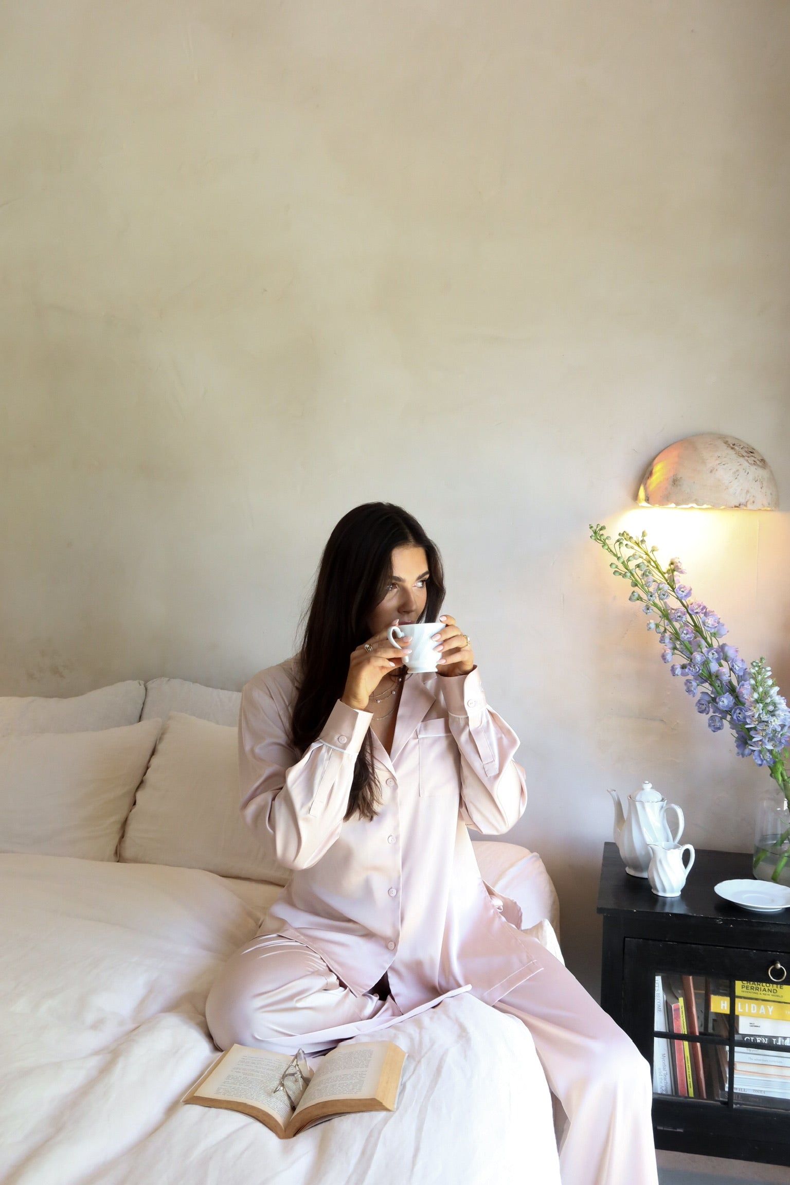 Designed in Australia, Homebodii’s beautiful pyjama sets look beautiful and feel amazing for your mornings, nights, or even everyday wear! You can pair our elegant linen sets with some strappy sandals and some gold jewellery for a sunny summer’s day out, or snuggle into bed on a cold winters night with our long, soft, rayon sets. Our silky sateen long and short piping sets are guaranteed to add a little bit of extra specialness to any of your days