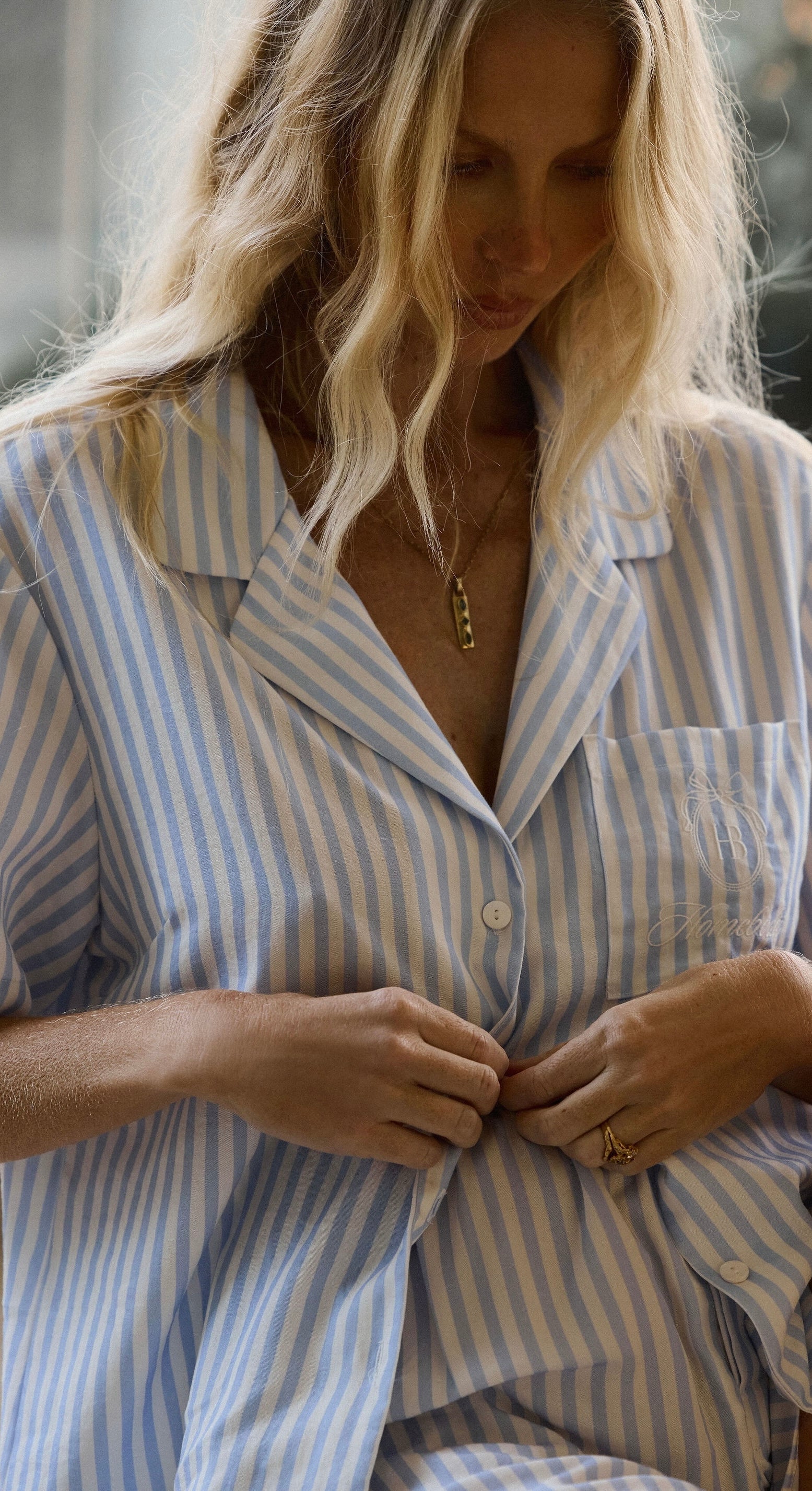 At Homebodii, we personalise your garments in our sunny studio. Our complimentary monogramming service allows you to add your own special touch to your beautiful pyjamas. Your custom monogramming goes straight to the careful touch of our embroidery technicians, to be beautifully stitched onto your pyjamas before we hand package them.