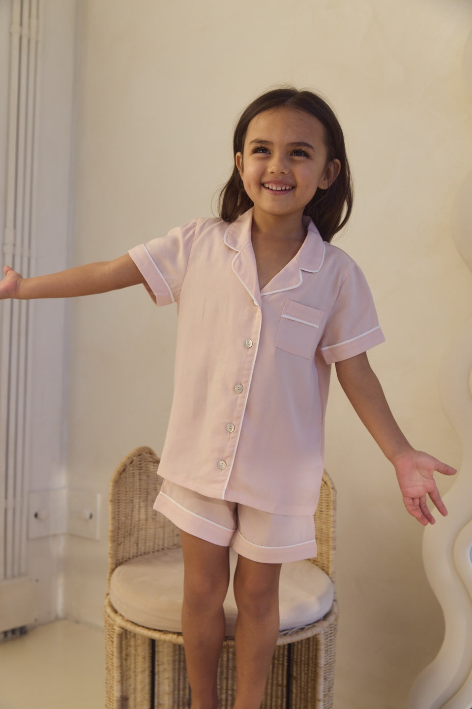 Eva Kids Short Tencel™ Pyjama Set - Blush with White Piping