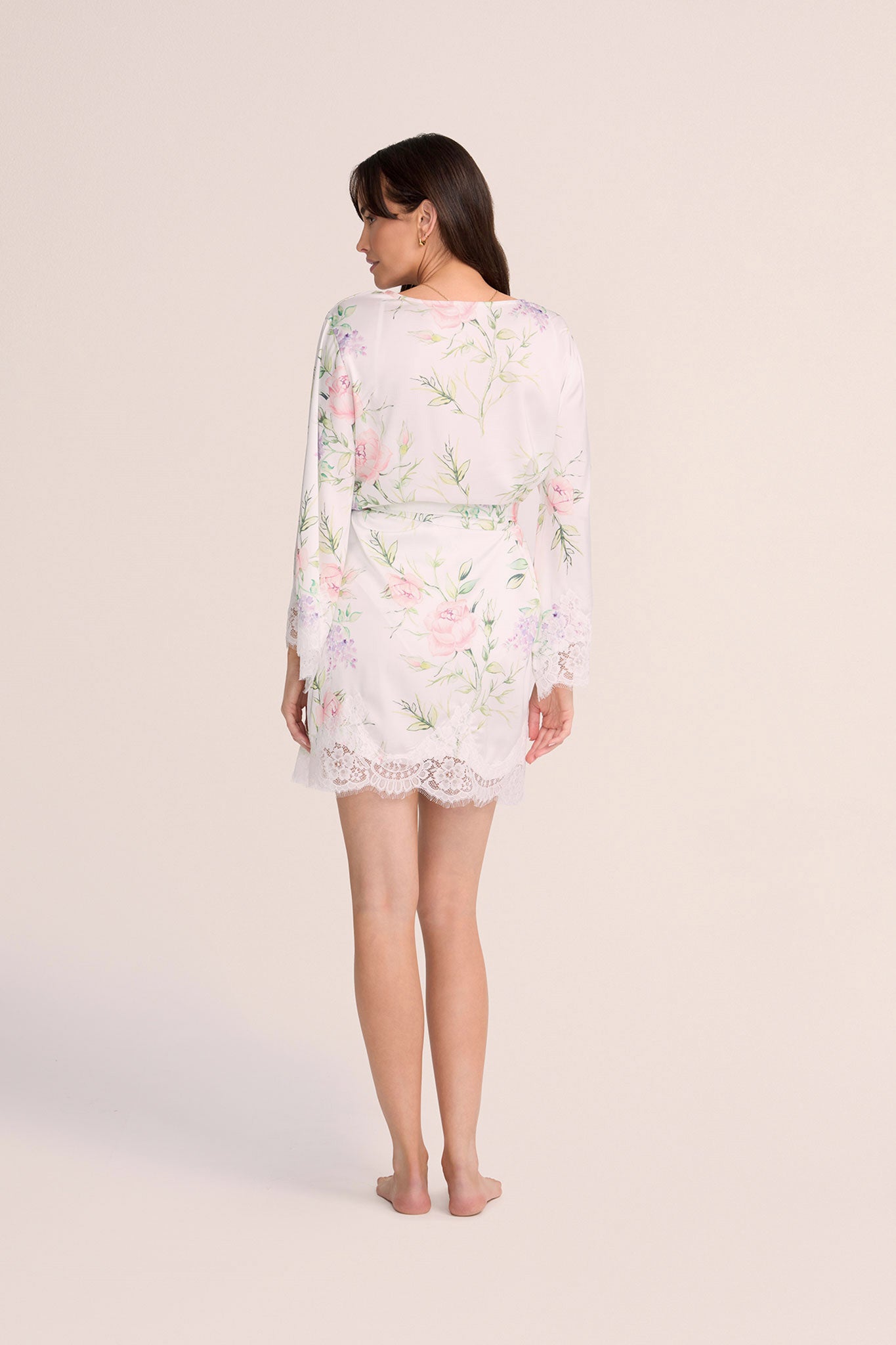Our best-selling Sofia print comes to life in the exquisitely crafted homebodii® Sofia Lilac Floral Robe, merging timeless design with delicate detailing for an unforgettable look. This robe showcases an exclusive, hand-drawn floral print in soft lilac hues, bringing a touch of artistry to your wardrobe and making each piece uniquely beautiful. Tailored from ultra-soft poly-satin charmeuse, it drapes effortlessly for a flattering, relaxed fit that feels as luxurious as it looks.