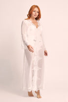 Our best-selling Helena Lace Robe embodies timeless elegance and modern romance. Crafted from semi-sheer white chiffon and adorned with intricate lace rosettes, this signature Homebodii design perfectly balances sophistication and allure.