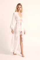 A favourite among brides worldwide, the Helena makes an unforgettable bridal robe — the ideal choice for wedding mornings, pre-ceremony photos, or simply adding a touch of luxury to your getting-ready ritual. The long, flowing silhouette drapes beautifully, while the exclusive lace detailing reflects Homebodii’s dedication to artistry and craftsmanship.
