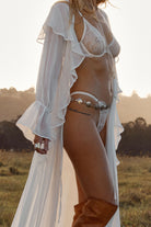 The Persephone Robe by Homebodii is a stunning and feminine style that exudes elegance, making it the perfect choice for springtime. Crafted from a soft and sheer chiffon fabric, this robe offers a delicate and luxurious feel.