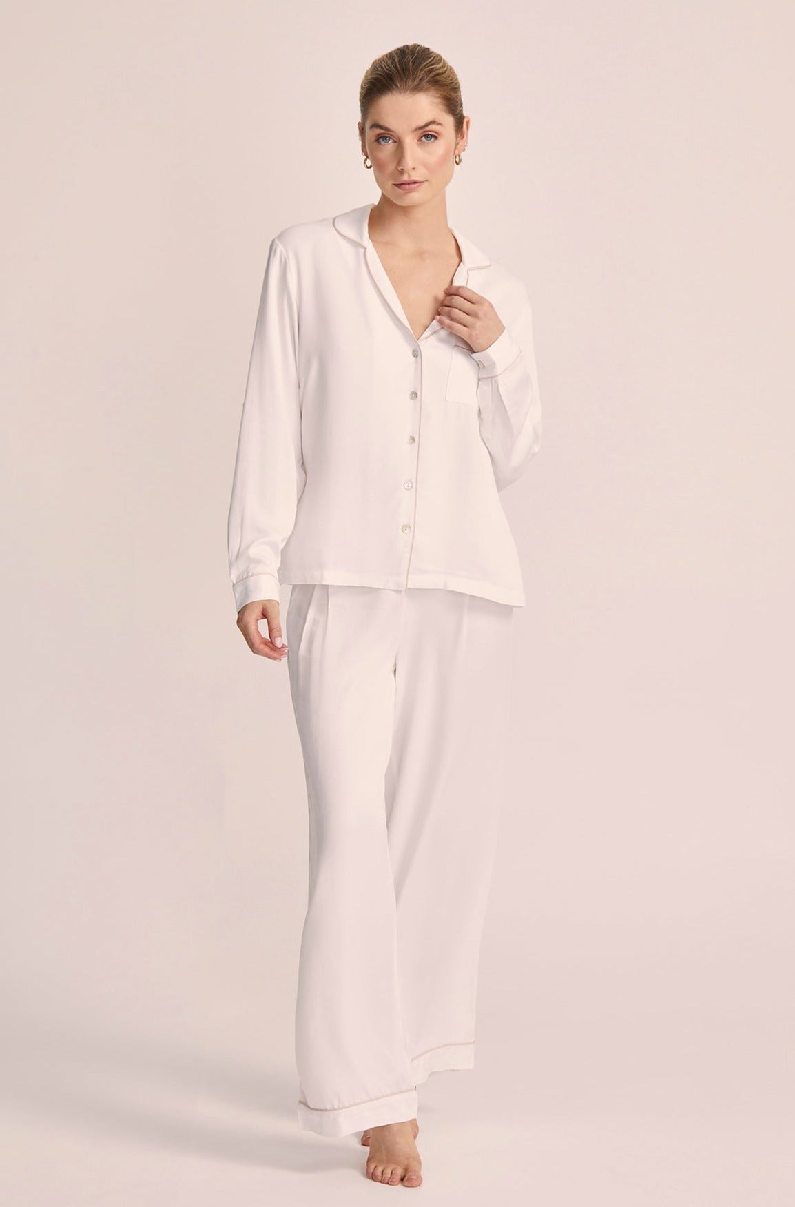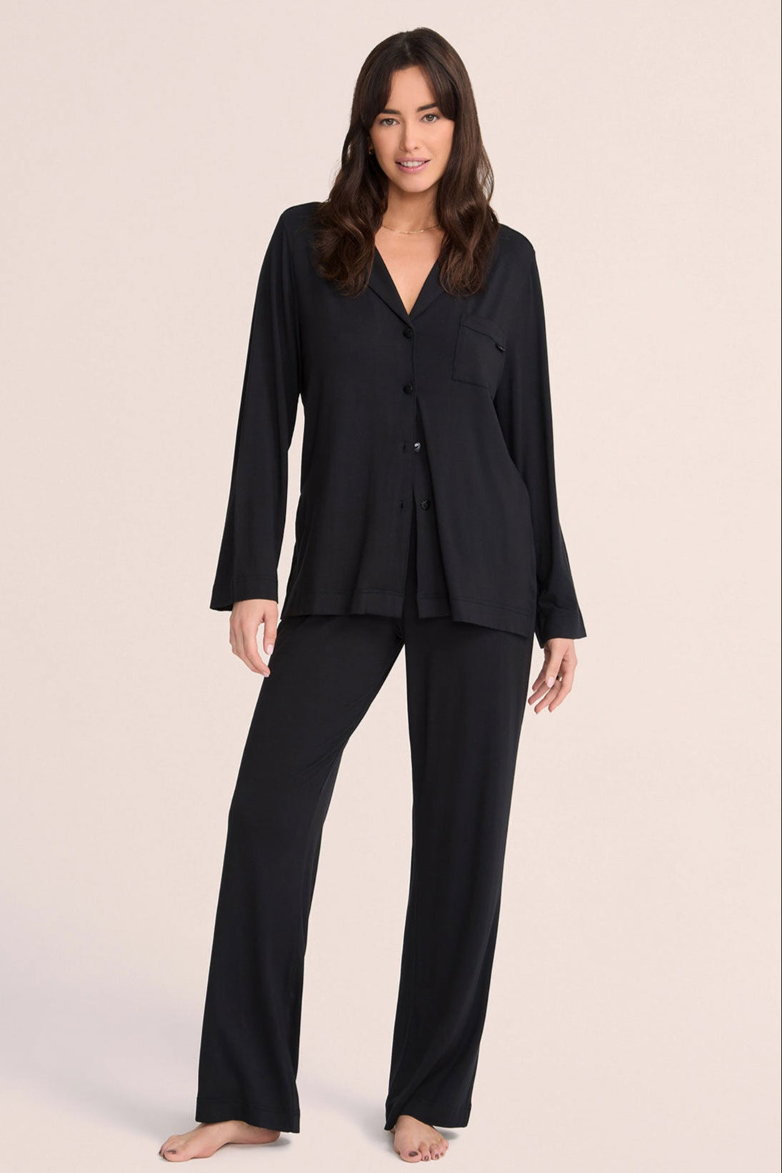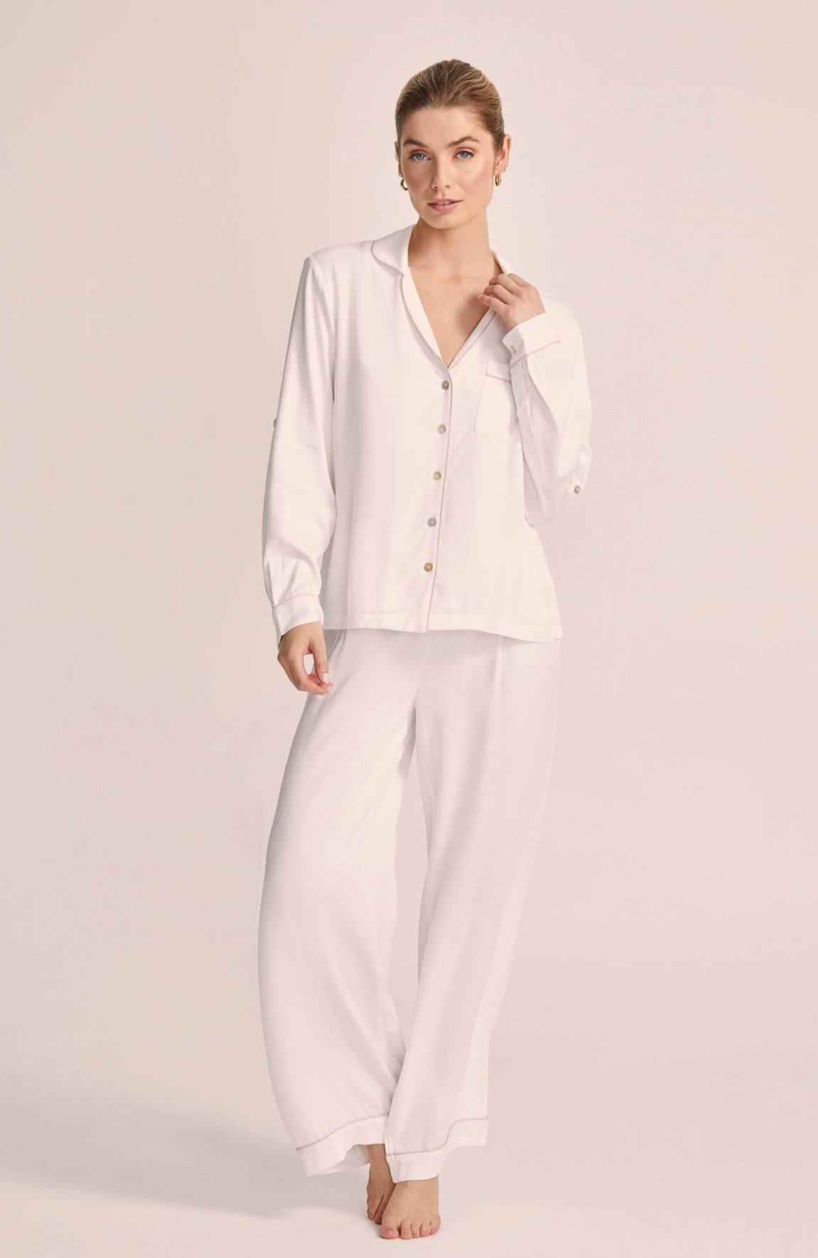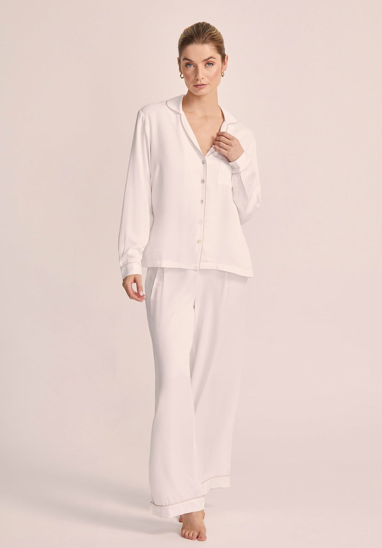 Linen, known for its natural texture and breathability, is featured in Homebodii's pyjama collections. It's a durable fabric that softens over time, providing comfort and a relaxed look suitable for both sleepwear and loungewear.