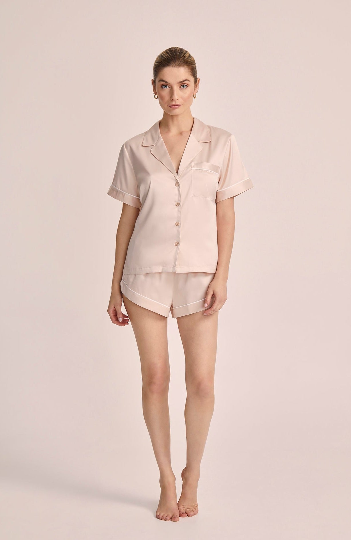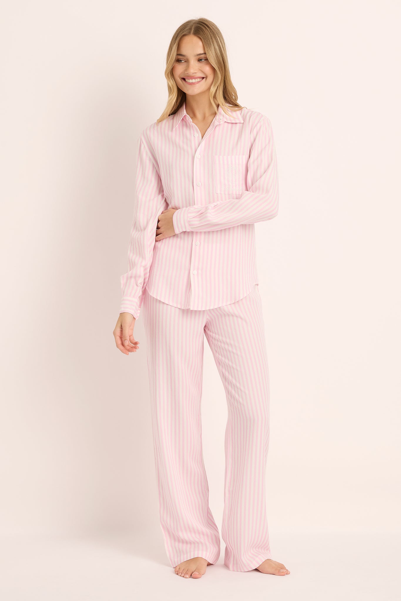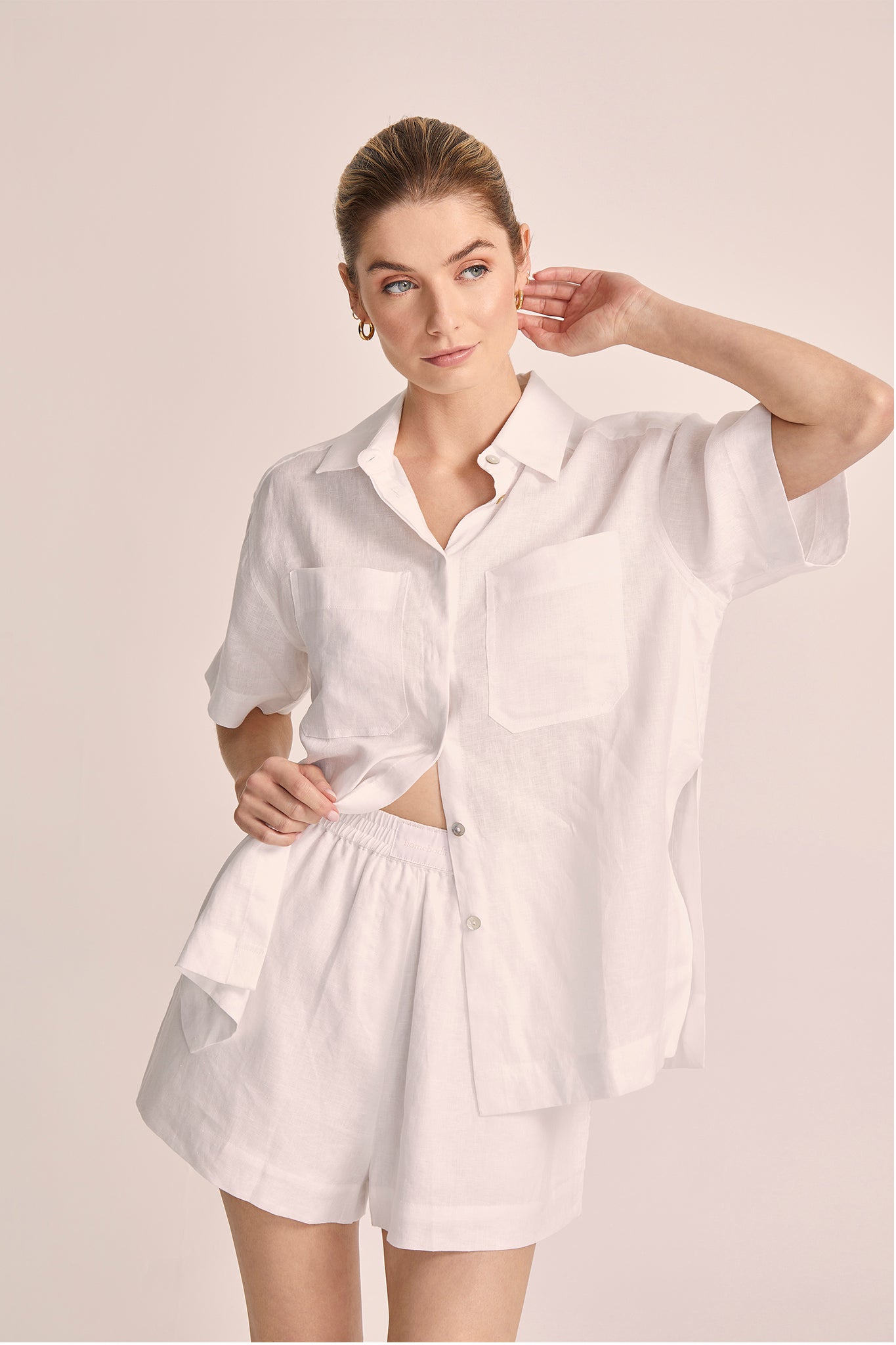 Linen, known for its natural texture and breathability, is featured in Homebodii's pyjama collections. It's a durable fabric that softens over time, providing comfort and a relaxed look suitable for both sleepwear and loungewear.