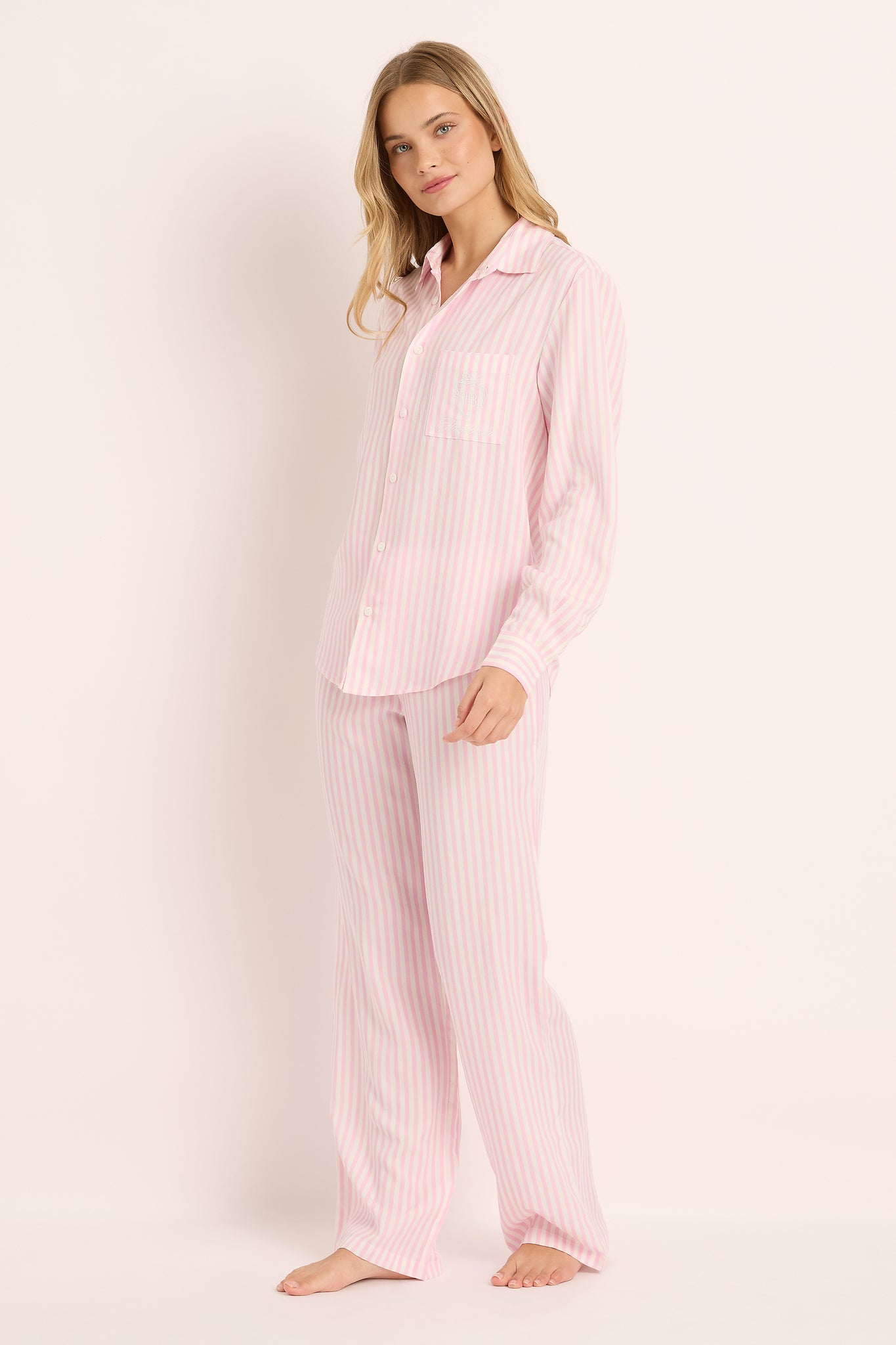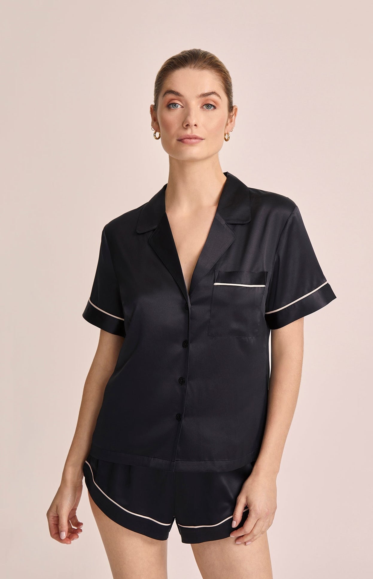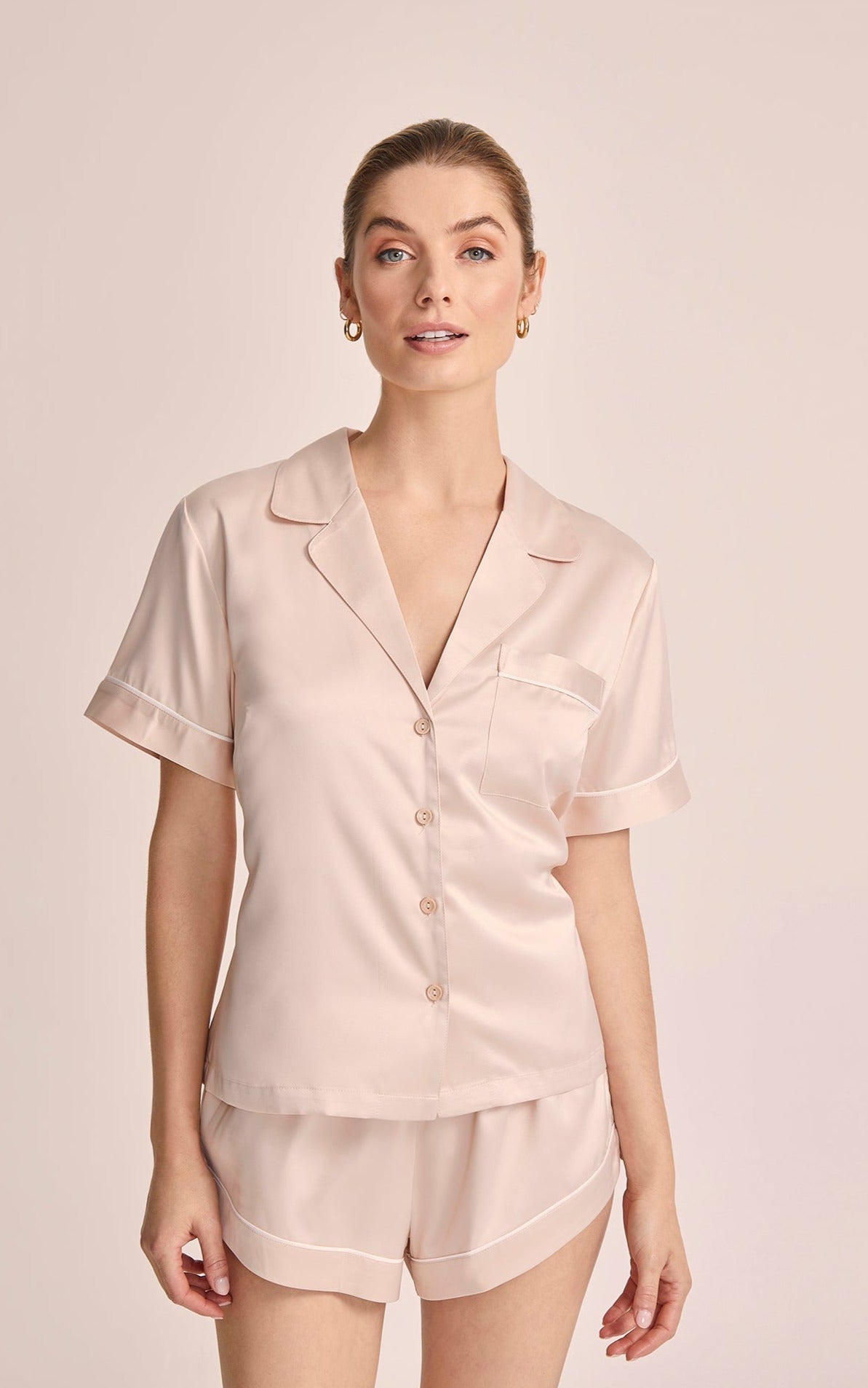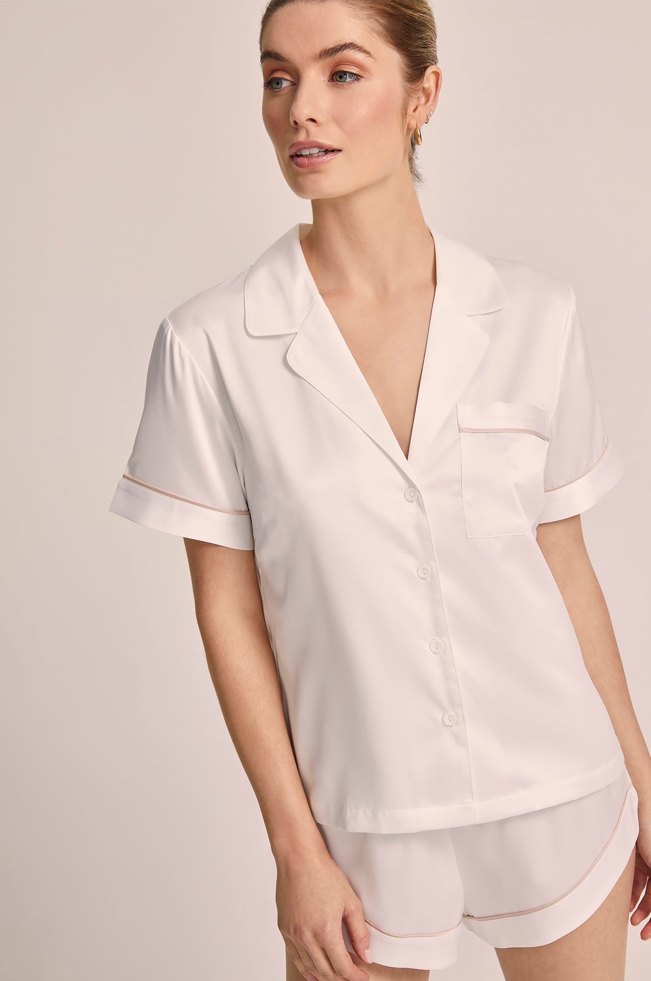 Linen, known for its natural texture and breathability, is featured in Homebodii's pyjama collections. It's a durable fabric that softens over time, providing comfort and a relaxed look suitable for both sleepwear and loungewear.