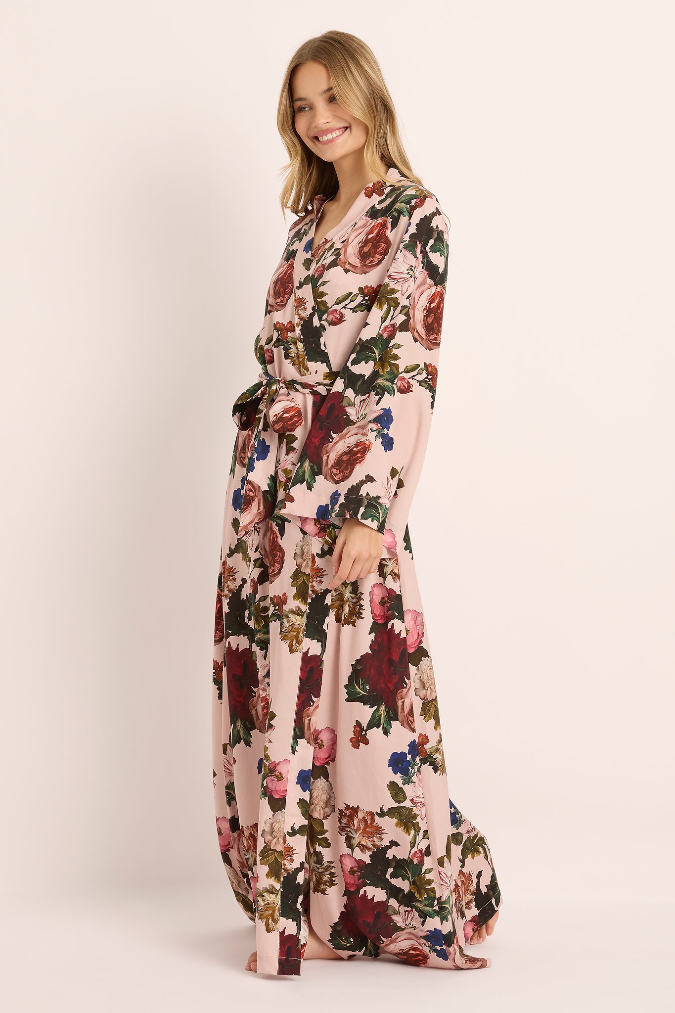 Indulge in luxurious comfort with the Aurora Maxi Robe in Rose Print. Crafted from premium OekoTex certified satin, this elegant robe drapes beautifully while feeling incredibly soft against your skin.