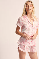 This exquisite Camille short pyjama set features a thoughtfully designed top and bottom, meticulously crafted from sustainable TENCEL™ fabric. Known for its luxurious softness and breathability, TENCEL™ ensures a dreamy and comfortable night's sleep. The top showcases delicate details, while the bottoms offer a relaxed fit for effortless lounging.