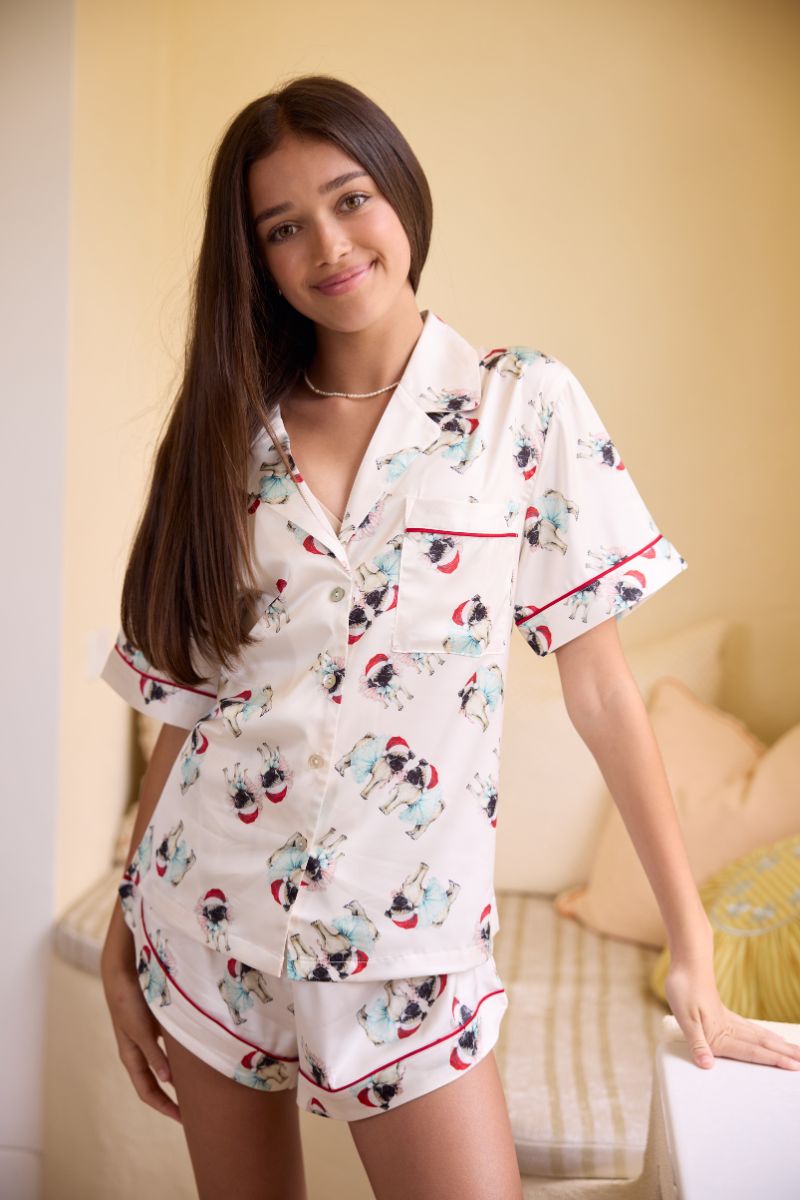 Looking for the perfect Christmas gift for the pug lover in your life? Look no further than our Ruby Pug PJs! Featuring an exclusive illustration by Australian artist Alexandria Nea, these pyjamas are sure to delight any pug lover. Made from from super soft fabric, they're perfect for snuggling up in and with a real-life pug named Ruby as the inspiration for the design, they're sure to bring a smile to your loved one's face. So why not give the gift of comfort and joy this holiday season with our Ruby Pug PJs?