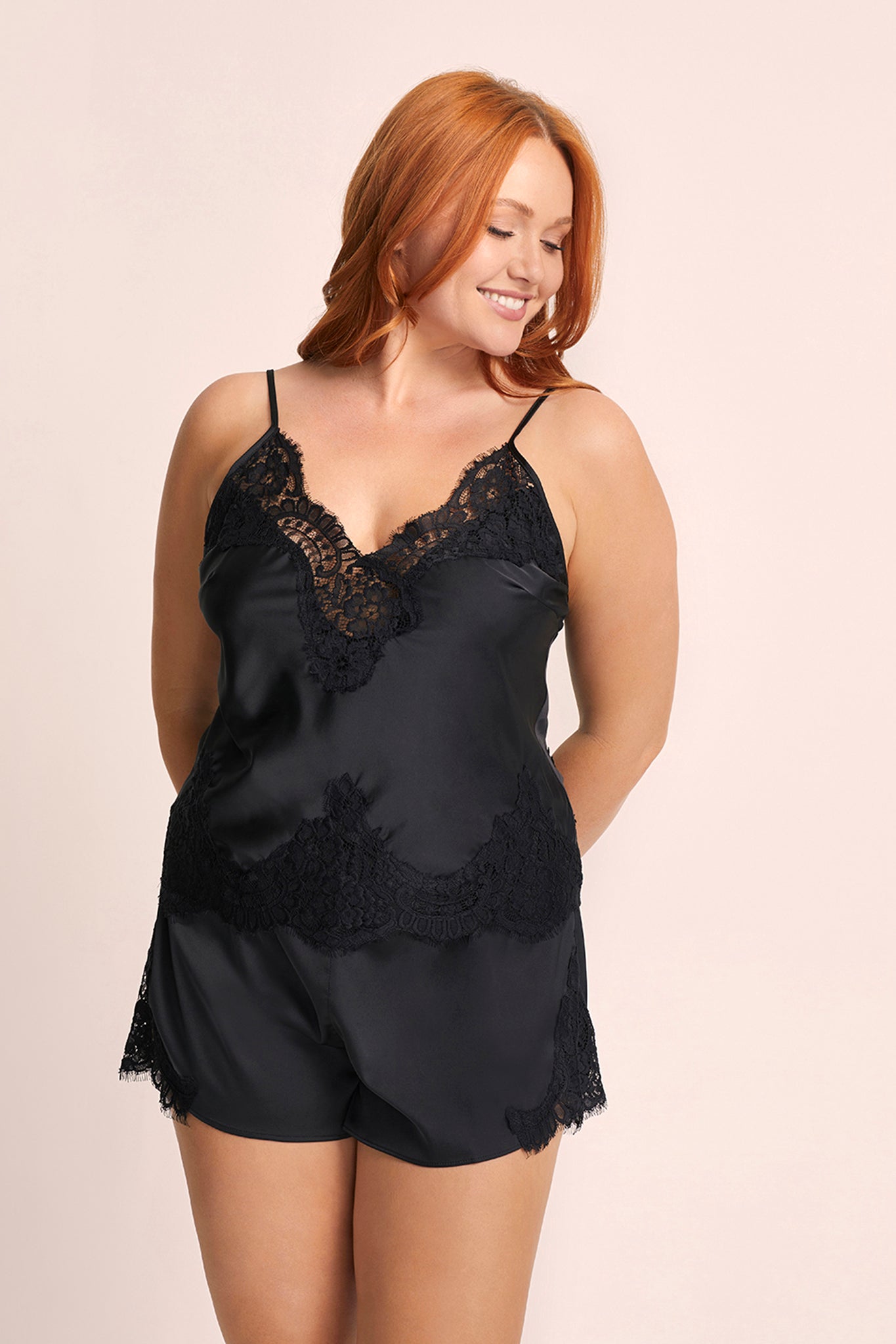 Designed to flatter your figure, the bias-cut cami accentuates your curves, while the alluring v-neckline and French knicker-style bottoms add a touch of allure. Perfect for special evenings or as a stylish addition to your everyday wardrobe, this set guarantees confidence and elegance.