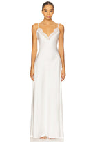 Perfect as a bridal slip, wedding night lingerie, or elevated sleepwear, this timeless piece transitions seamlessly from nightwear to occasion wear. The minimalist silhouette skims the body without clinging, while adjustable straps allow for a personalized fit and all-night comfort. Whether worn beneath a wedding gown, styled as an intimate bridal look, or enjoyed as a luxurious satin nightdress, this is a refined essential.