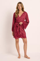 Introducing the Sian Lace Robe, an opulent and enchanting robe that promises to leave a lasting impression. Meticulously fashioned from sumptuously soft satin and delicate lace, this robe is expertly designed to enhance your natural curves, thanks to its cinching waist tie and form-flattering silhouette.